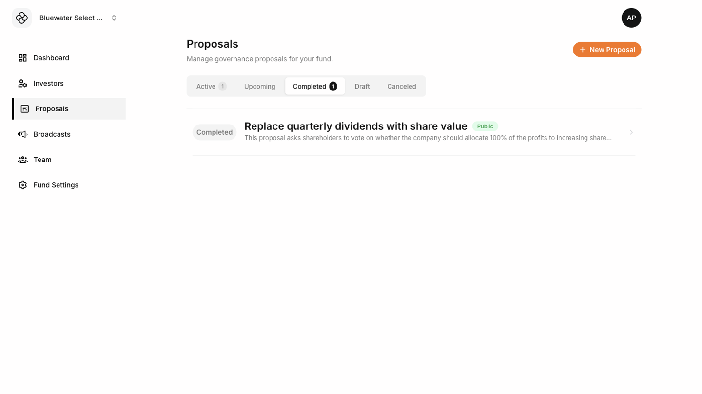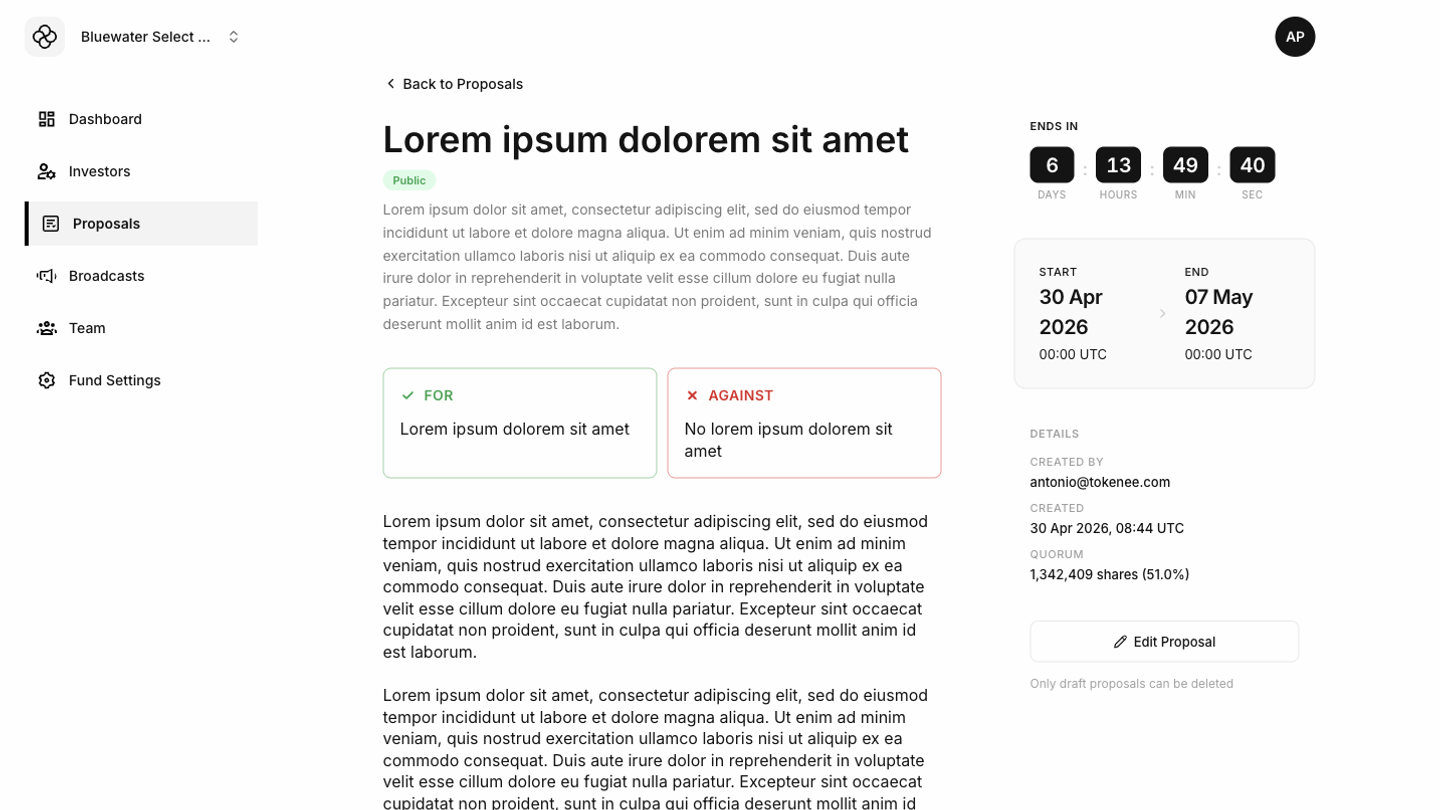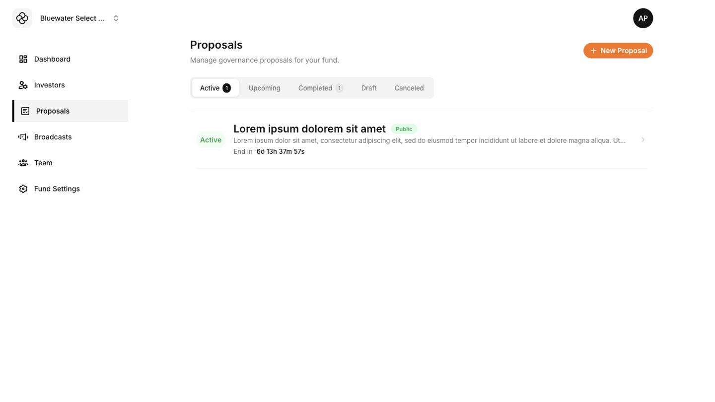 - Active proposals are visible to eligible investors during the voting period.