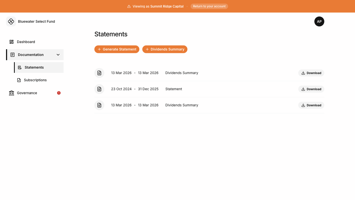 The Tokenee Fund Platform shows information for your fund account. If something looks missing or incorrect, contact your fund administrator. They can verify your holder record, subscriptions, transactions, documents, and voting eligibility.Documents